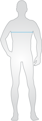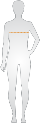 Messen Sie horizontal um den Körper unterhalb der Arme, oberhalb der stärksten Stelle der Brust